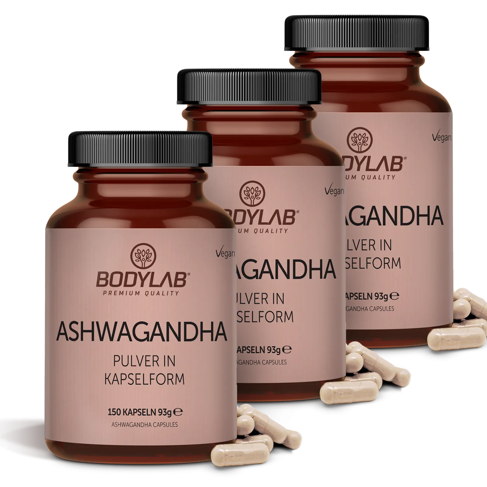 BODYLAB3 x Ashwagandha Pulver in Kapselform (3 x 150 Kapseln)