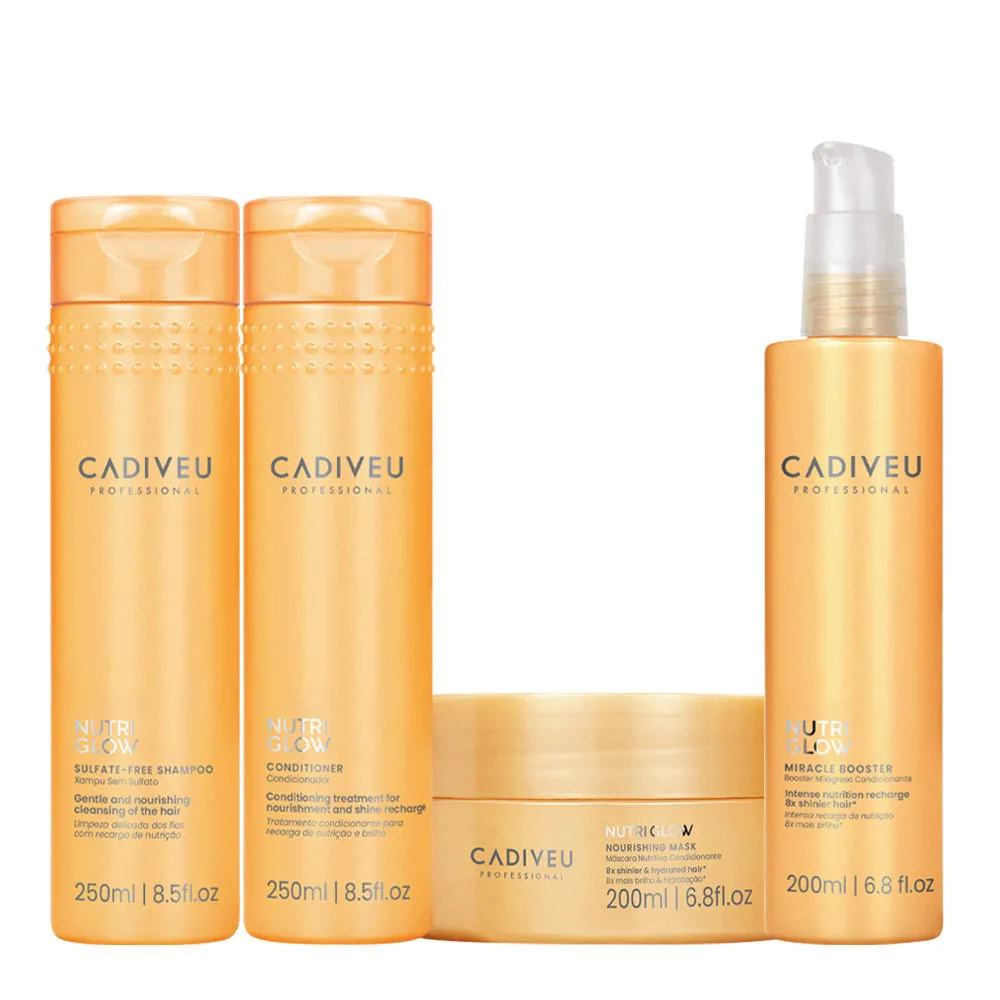 Cadiveu Nutri Glow Sulphate Free Shampoo 250ml Conditioner 250ml Mask 200ml Booster 200ml