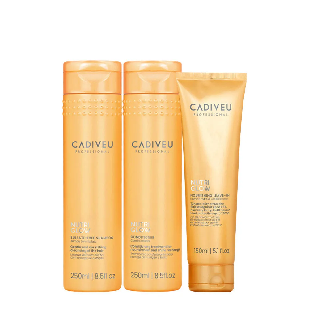 Cadiveu Nutri Glow Sulphate Free Shampoo 250ml Conditioner 250ml Leave-In 150ml
