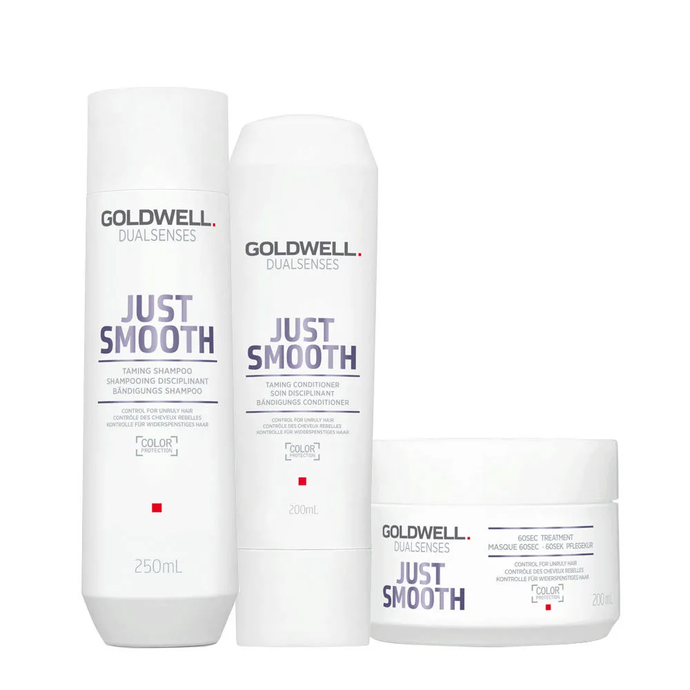 Goldwell Dualsenses Just Smooth Taming Shampoo 250ml Conditioner 200ml 60Sec Treatment 200ml