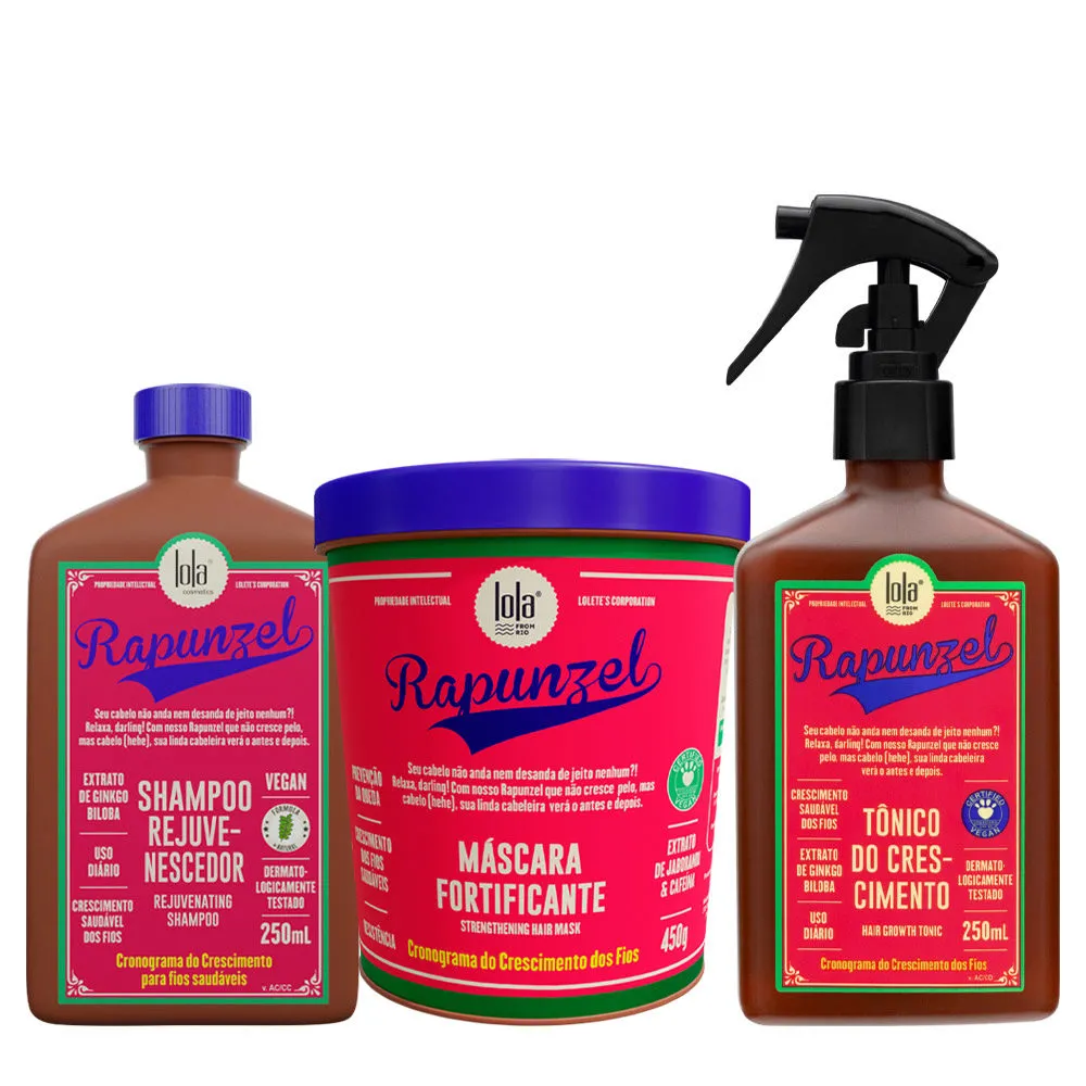 Lola From Rio Rapunzel Shampoo Rejuvenescedor 250ml Mascara Fortificante 450gr Tonico do Crescimento 250ml
