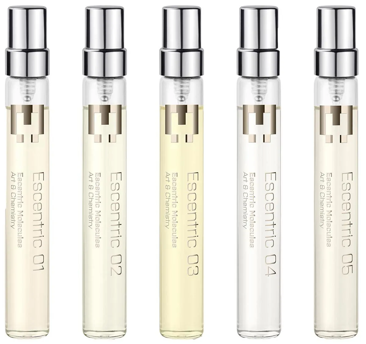 Escentric 01 zelebriert die Hyperabstraktion von Iso E Super, ein Molekül, das dicht über der Haut schwebt und eine undefinierbare Aura um den Körper des Trägers schafft. Escentric 01 fokussiert sich auf Iso E Super bei 65% der Duftkomponente in einer verkürzten Formel, die entwickelt wurde, um die Effloreszenz des Moleküls zu maximieren. Es enthält außerdem Limettenschale, Hedion (grüne Jasminblüte), Orris, balsamische Noten und frischen Moschus. Geza Schön: „Ich wollte etwas Unkonventionelles kreieren, nicht zu parfümistisch, etwas für meine Freunde, die gesagt haben, dass sie keine Düfte mögen.“